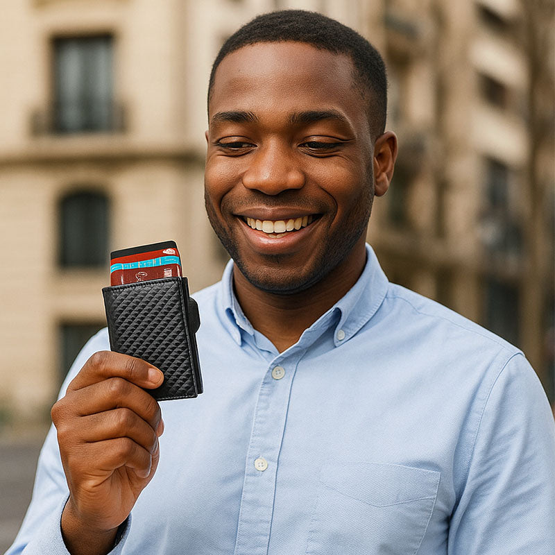 Grâce à sa technologie de blocage RFID, vos cartes sont protégées contre les scans non autorisés. Une tranquillité d’esprit assurée, où que vous soyez.