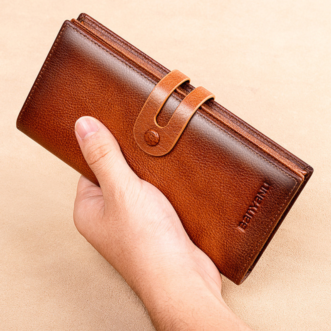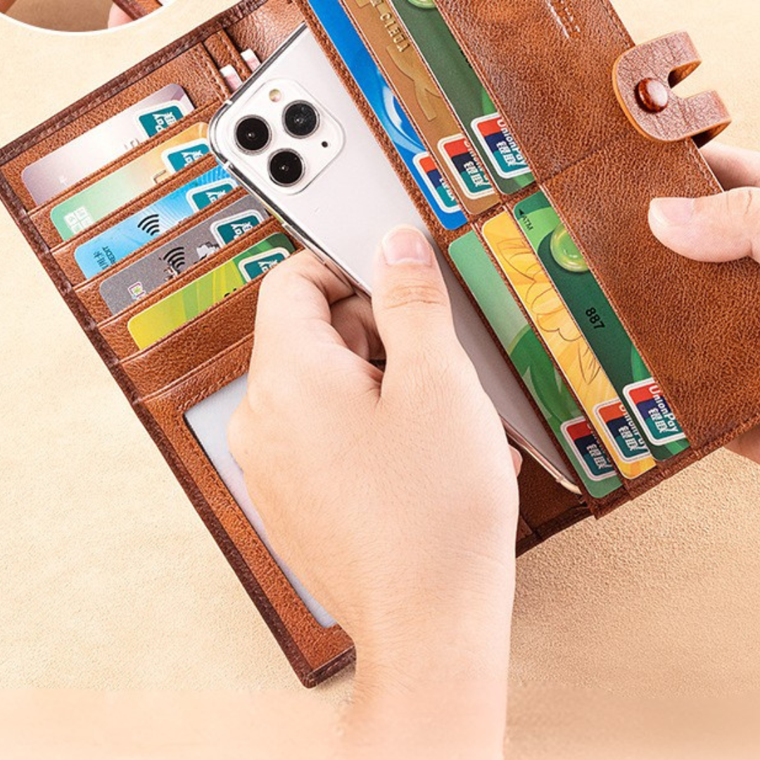 Élégance et praticité réunies dans un seul accessoire. Ce portefeuille long au style vintage vous offre un rangement parfait et une sécurité renforcée pour vos cartes et vos billets.